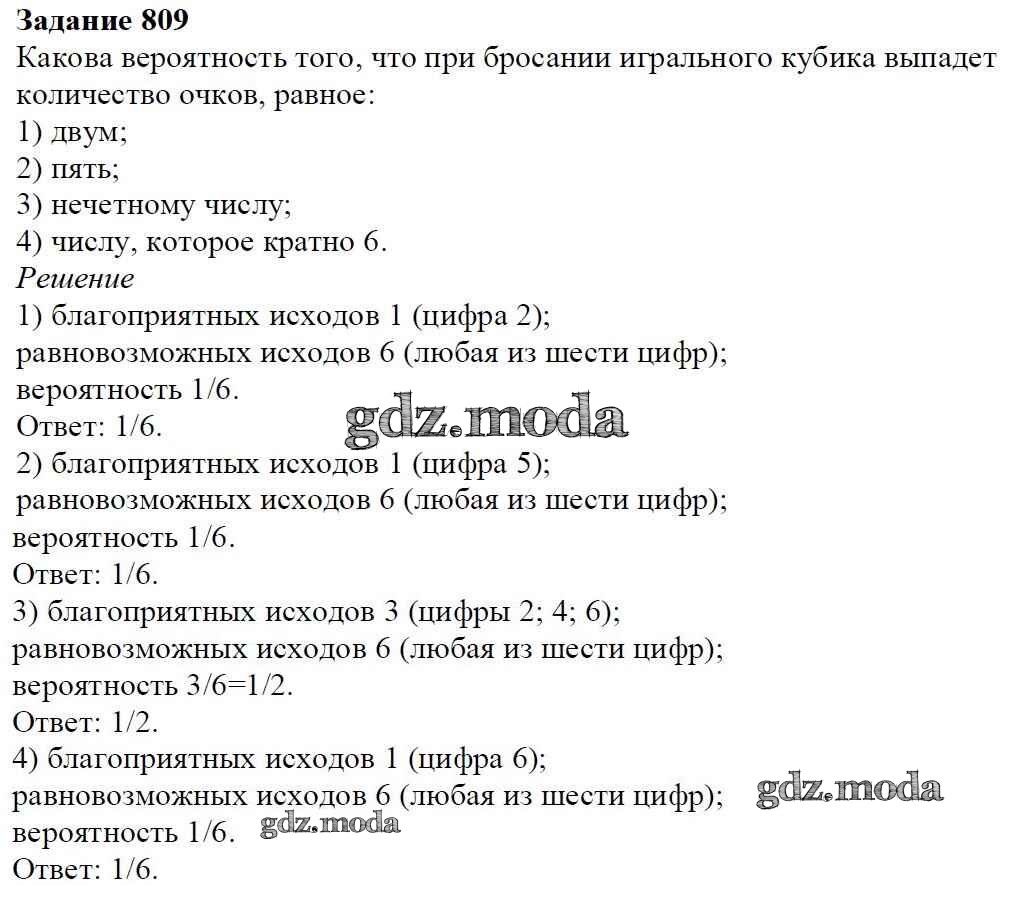 ОТВЕТ на задание № 809 Учебник по Математике 6 класс Мерзляк Алгоритм успеха