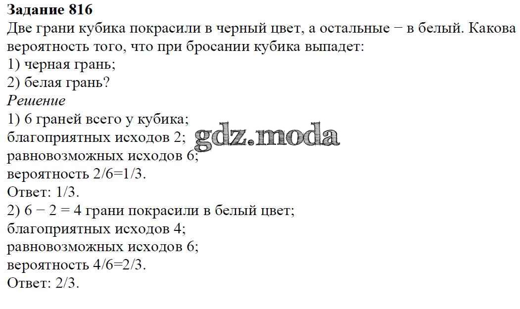 ОТВЕТ на задание № 816 Учебник по Математике 6 класс Мерзляк Алгоритм успеха
