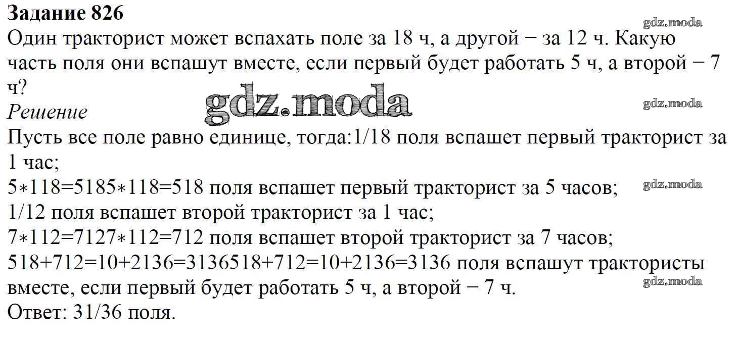 ОТВЕТ на задание № 826 Учебник по Математике 6 класс Мерзляк Алгоритм успеха