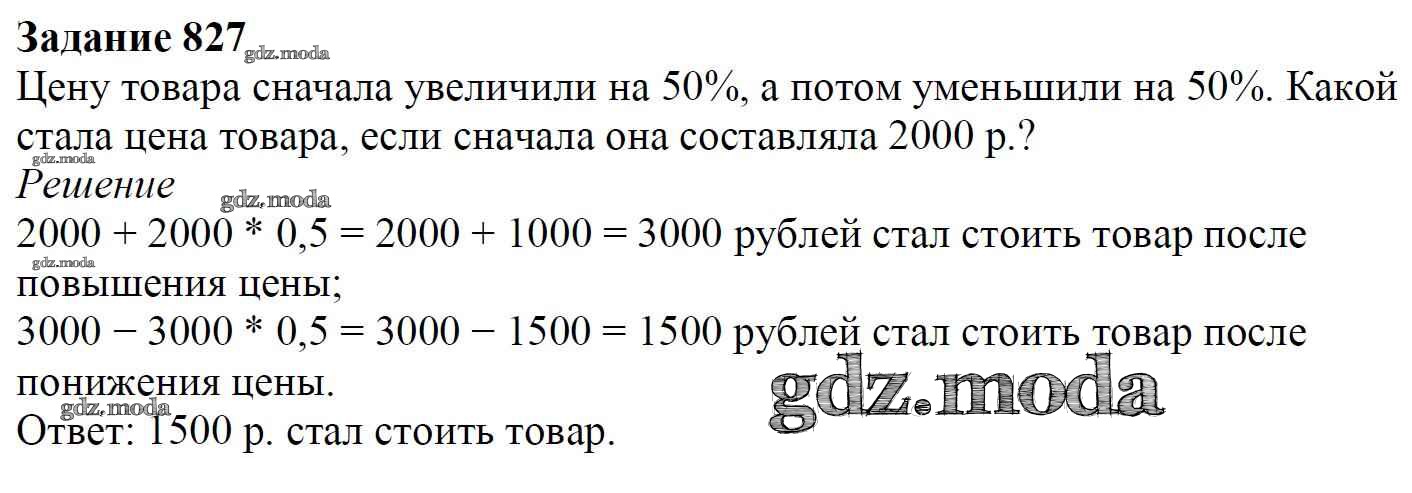 ОТВЕТ на задание № 827 Учебник по Математике 6 класс Мерзляк Алгоритм успеха