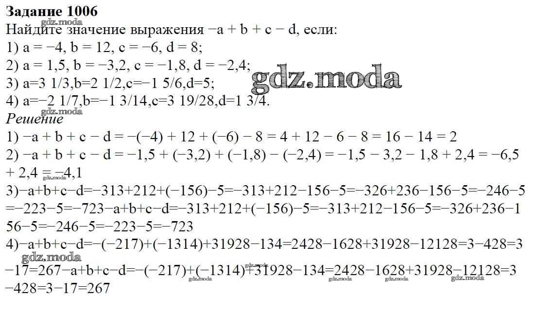 ОТВЕТ на задание № 1006 Учебник по Математике 6 класс Мерзляк Алгоритм успеха