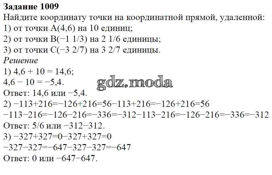 ОТВЕТ на задание № 1009 Учебник по Математике 6 класс Мерзляк Алгоритм успеха
