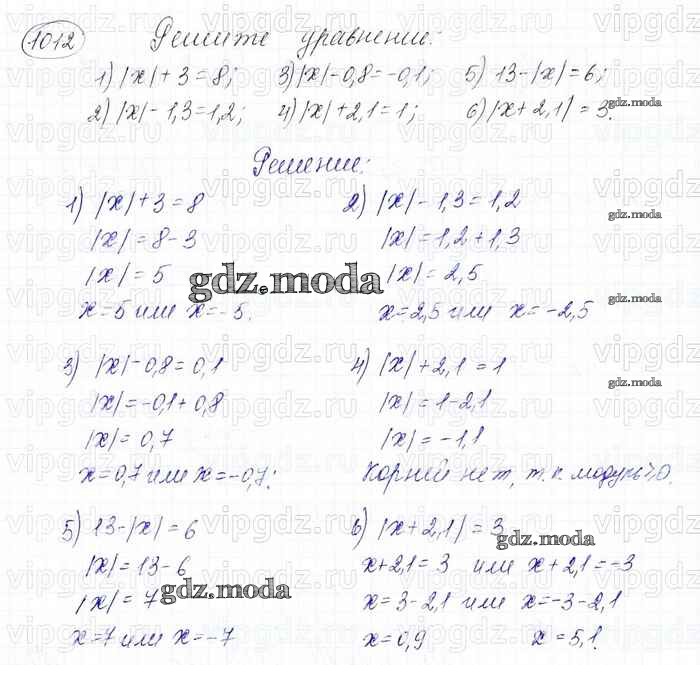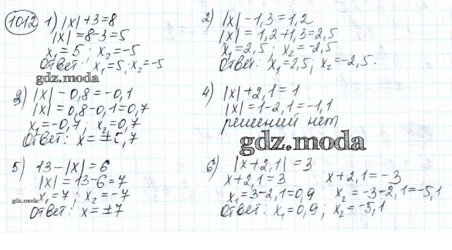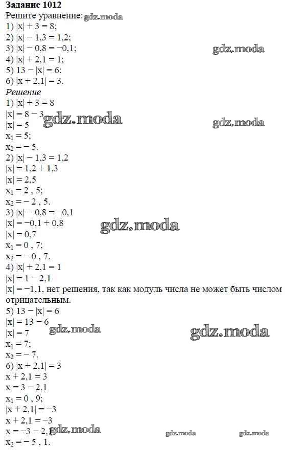 ОТВЕТ на задание № 1012 Учебник по Математике 6 класс Мерзляк Алгоритм успеха
