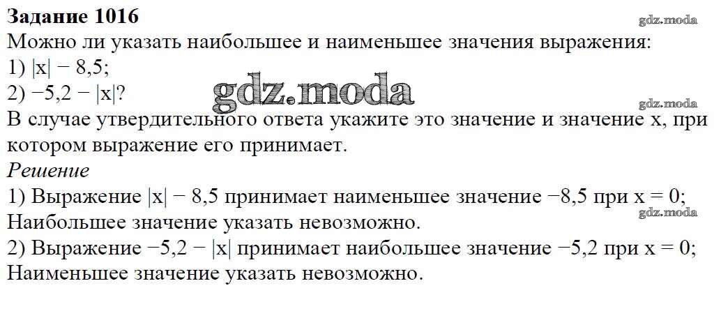 ОТВЕТ на задание № 1016 Учебник по Математике 6 класс Мерзляк Алгоритм успеха