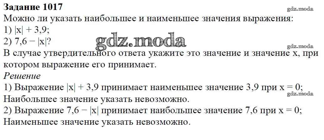 ОТВЕТ на задание № 1017 Учебник по Математике 6 класс Мерзляк Алгоритм успеха