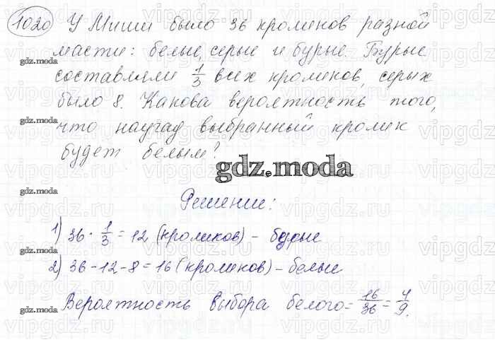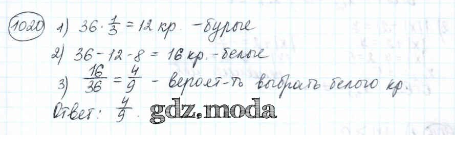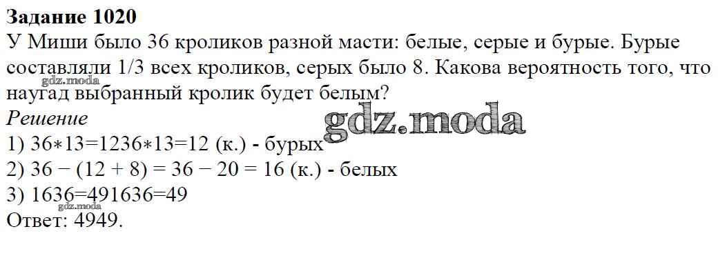 ОТВЕТ на задание № 1020 Учебник по Математике 6 класс Мерзляк Алгоритм успеха