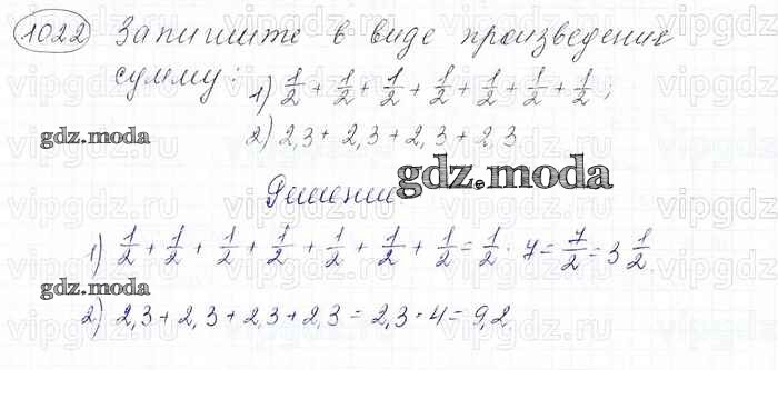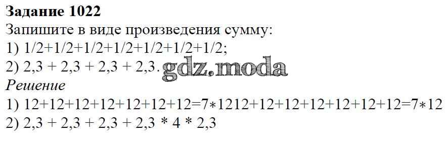 ОТВЕТ на задание № 1022 Учебник по Математике 6 класс Мерзляк Алгоритм успеха