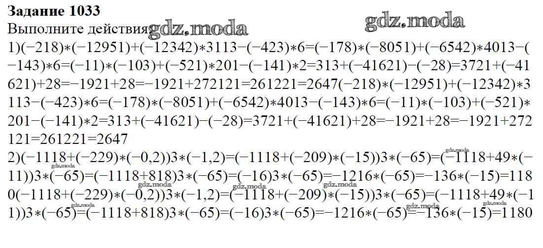 ОТВЕТ на задание № 1033 Учебник по Математике 6 класс Мерзляк Алгоритм успеха