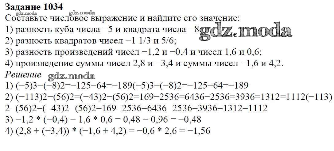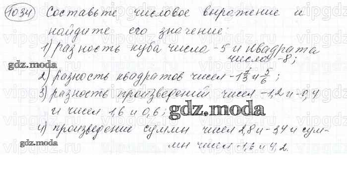 ОТВЕТ на задание № 1034 Учебник по Математике 6 класс Мерзляк Алгоритм успеха