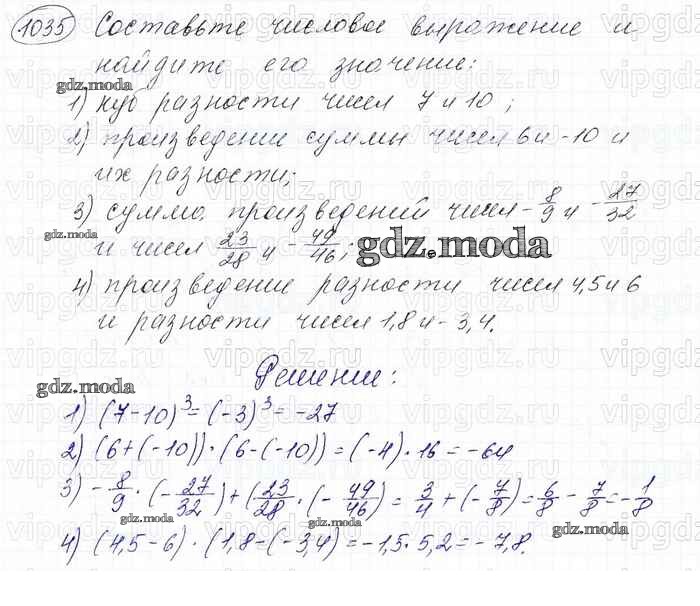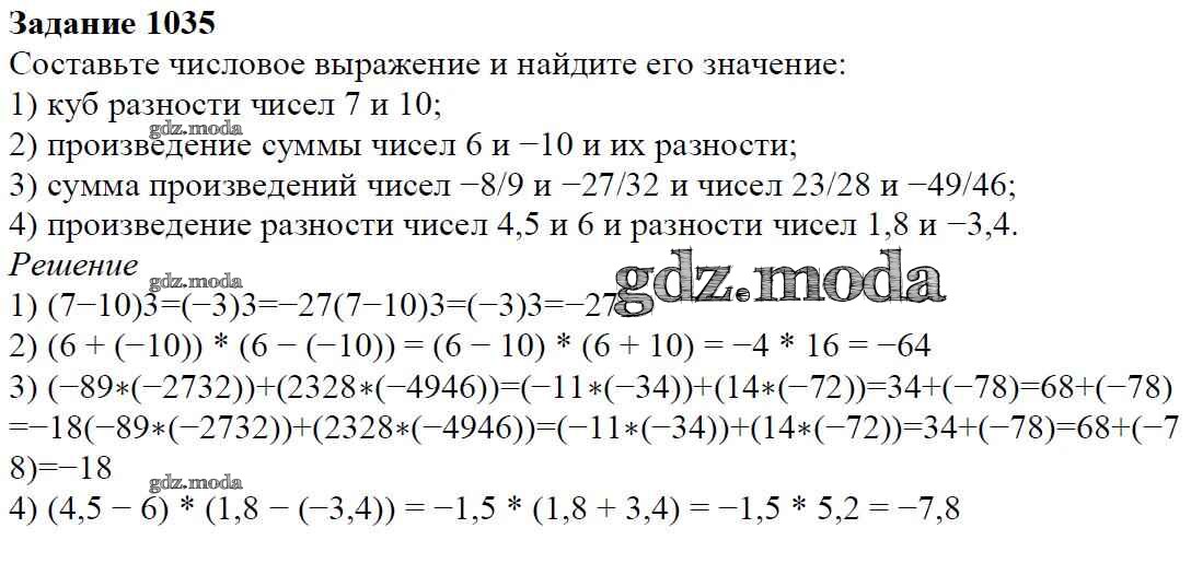 ОТВЕТ на задание № 1035 Учебник по Математике 6 класс Мерзляк Алгоритм успеха