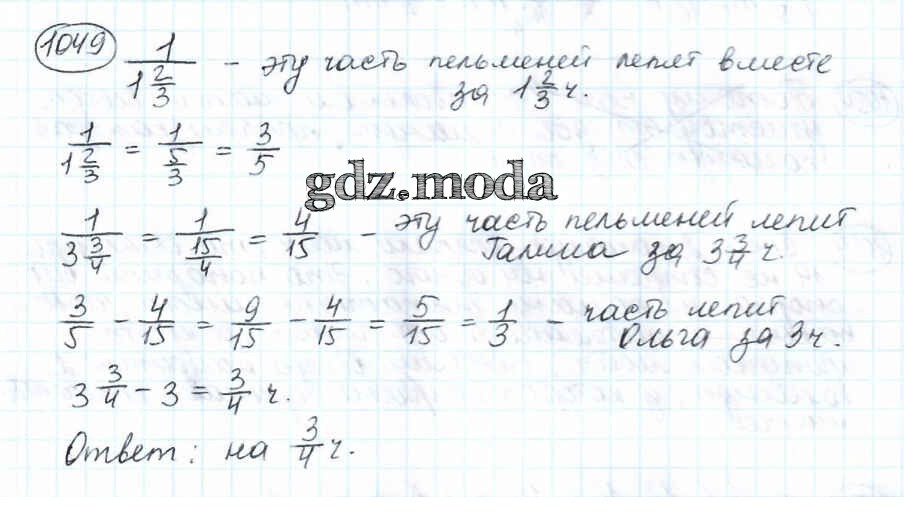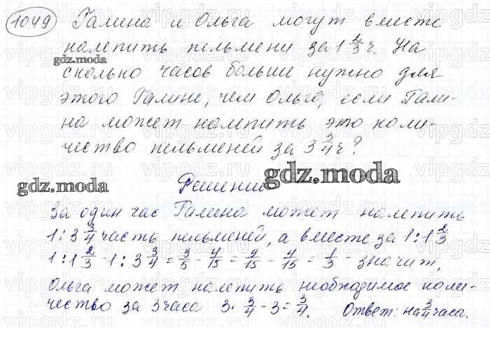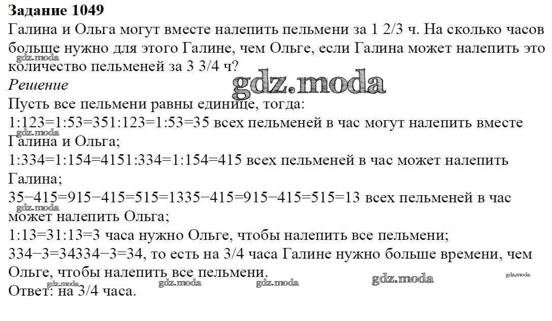 ОТВЕТ на задание № 1049 Учебник по Математике 6 класс Мерзляк Алгоритм успеха