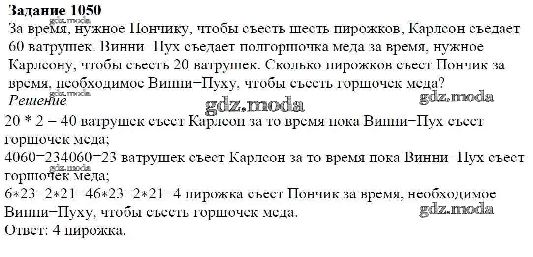 ОТВЕТ на задание № 1050 Учебник по Математике 6 класс Мерзляк Алгоритм успеха
