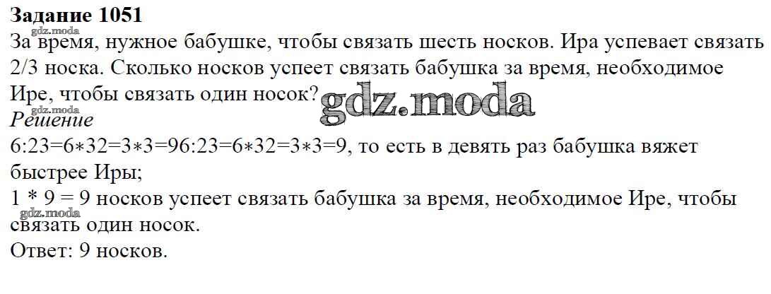 ОТВЕТ на задание № 1051 Учебник по Математике 6 класс Мерзляк Алгоритм успеха