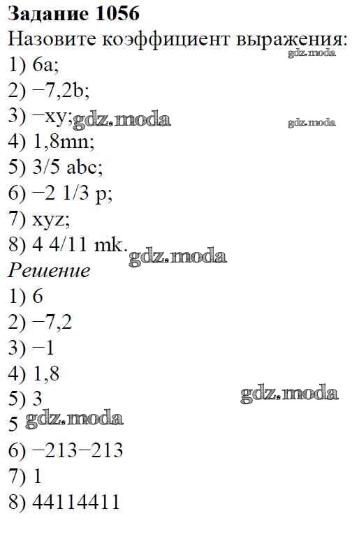 ОТВЕТ на задание № 1056 Учебник по Математике 6 класс Мерзляк Алгоритм успеха