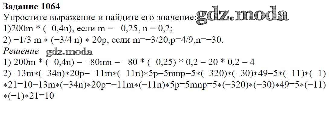 ОТВЕТ на задание № 1064 Учебник по Математике 6 класс Мерзляк Алгоритм успеха