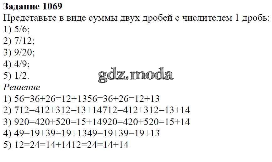 ОТВЕТ на задание № 1069 Учебник по Математике 6 класс Мерзляк Алгоритм успеха
