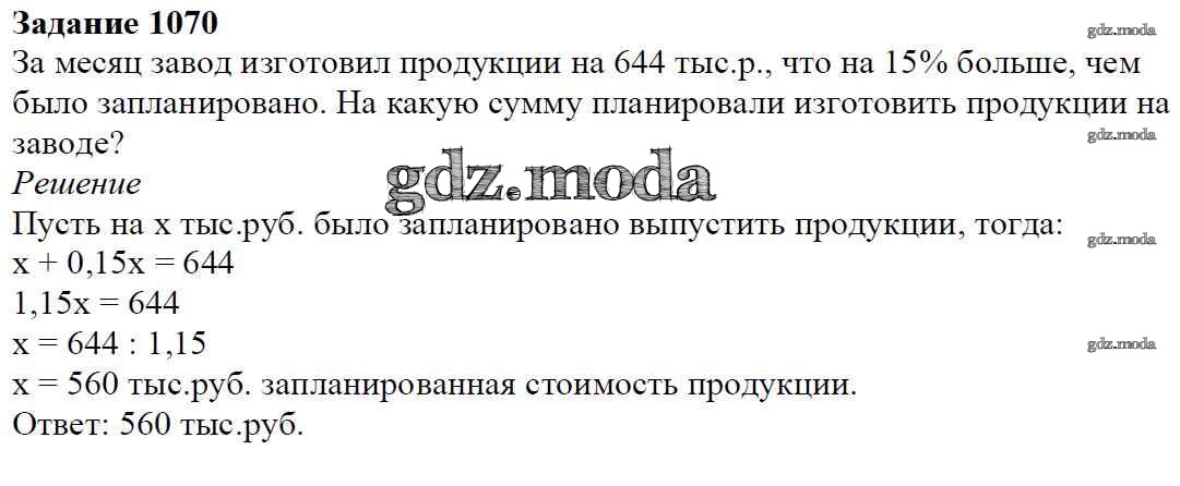 ОТВЕТ на задание № 1070 Учебник по Математике 6 класс Мерзляк Алгоритм успеха