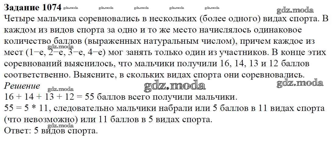 ОТВЕТ на задание № 1074 Учебник по Математике 6 класс Мерзляк Алгоритм успеха