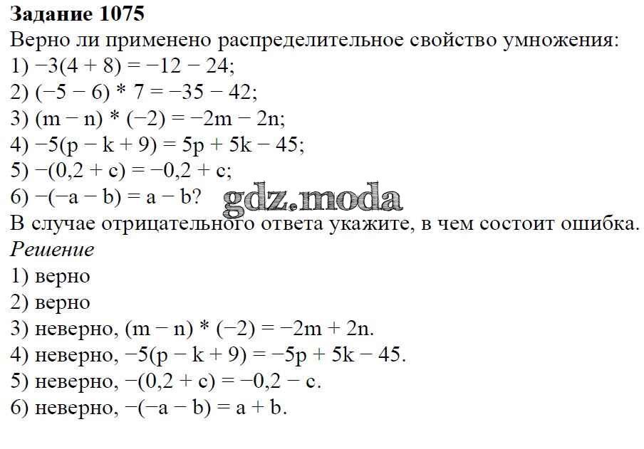 ОТВЕТ на задание № 1075 Учебник по Математике 6 класс Мерзляк Алгоритм успеха