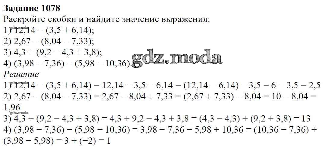 ОТВЕТ на задание № 1078 Учебник по Математике 6 класс Мерзляк Алгоритм успеха