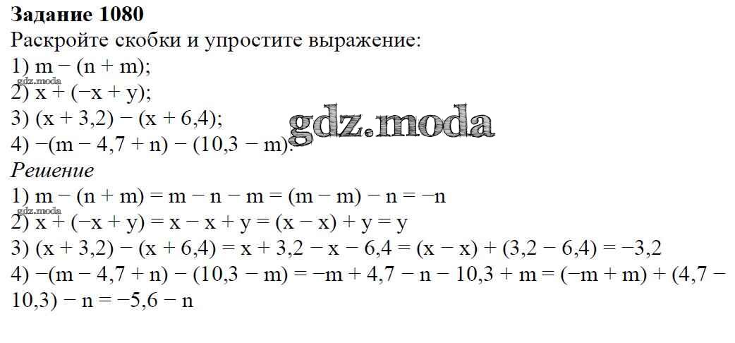 ОТВЕТ на задание № 1080 Учебник по Математике 6 класс Мерзляк Алгоритм успеха