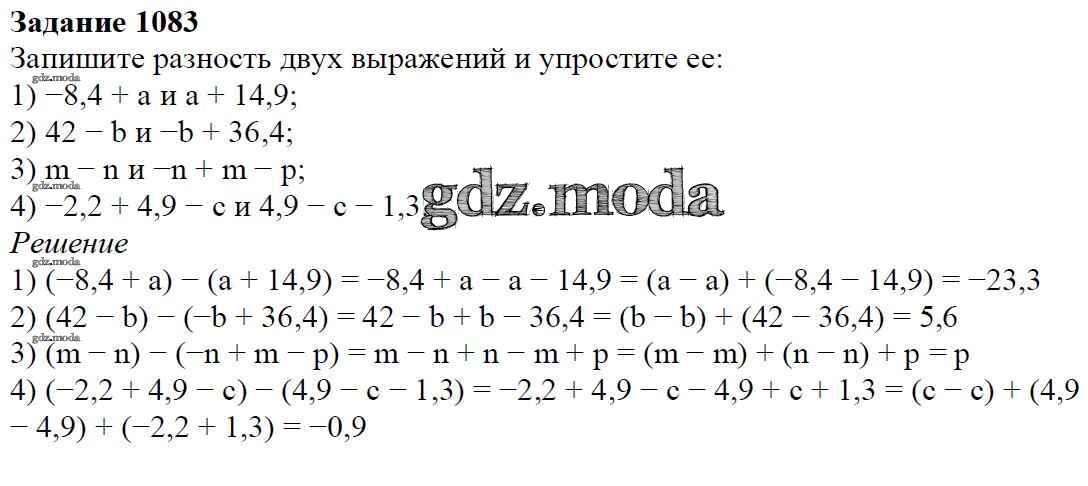 ОТВЕТ на задание № 1083 Учебник по Математике 6 класс Мерзляк Алгоритм успеха