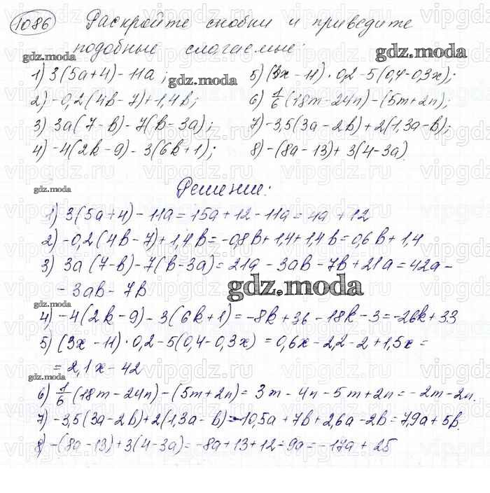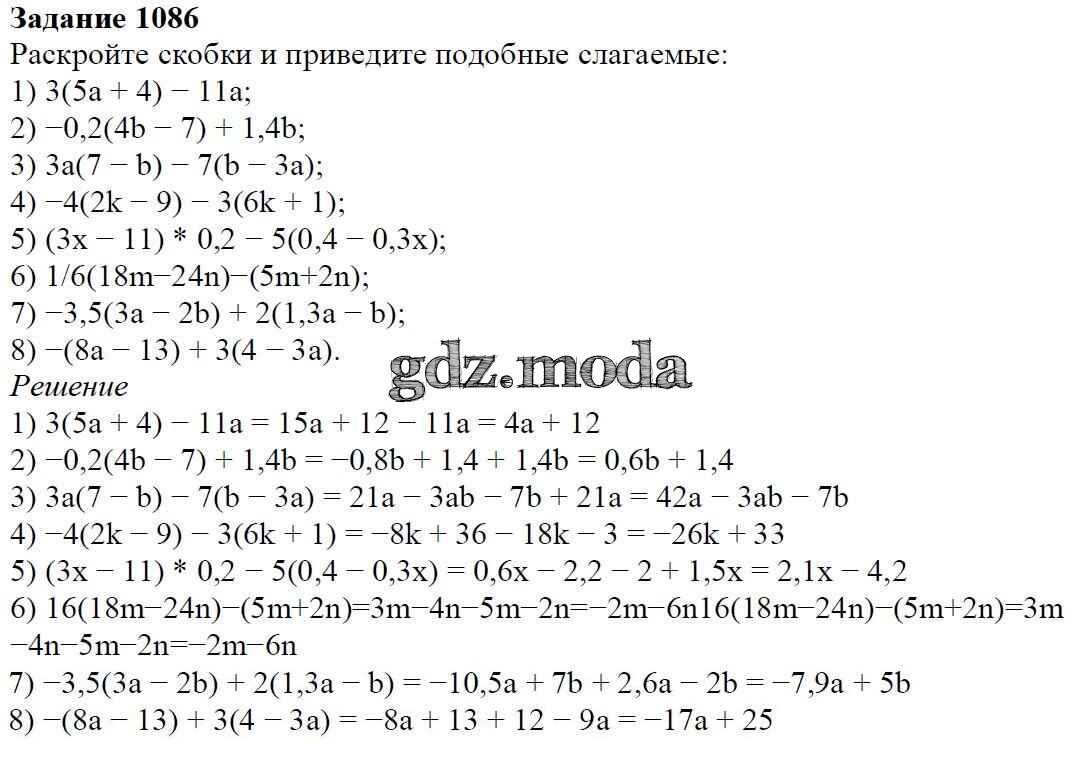 ОТВЕТ на задание № 1086 Учебник по Математике 6 класс Мерзляк Алгоритм успеха
