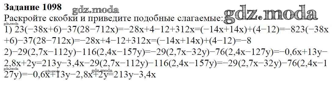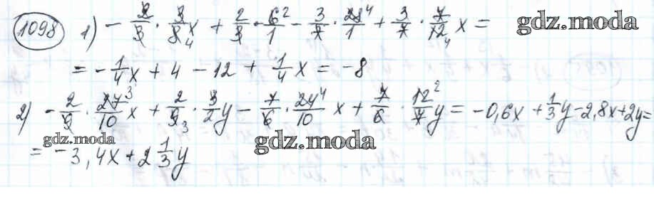 ОТВЕТ на задание № 1098 Учебник по Математике 6 класс Мерзляк Алгоритм успеха