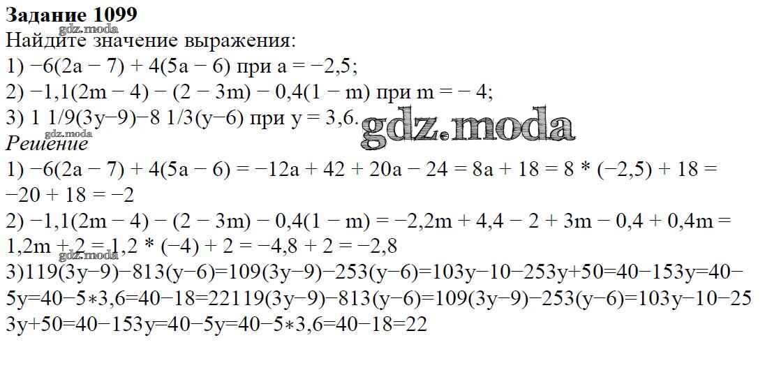 ОТВЕТ на задание № 1099 Учебник по Математике 6 класс Мерзляк Алгоритм успеха