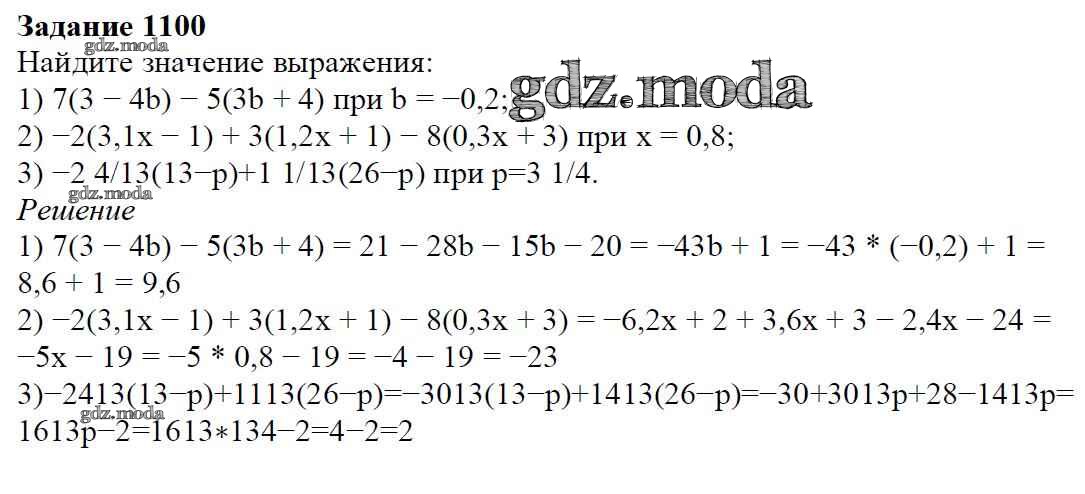 ОТВЕТ на задание № 1100 Учебник по Математике 6 класс Мерзляк Алгоритм успеха