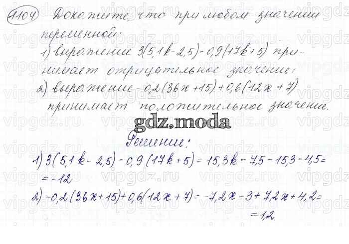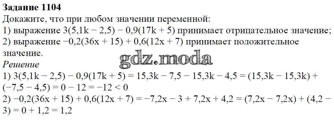 ОТВЕТ на задание № 1104 Учебник по Математике 6 класс Мерзляк Алгоритм успеха