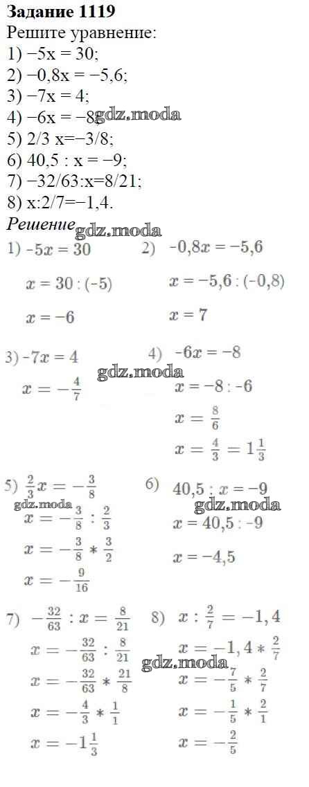 ОТВЕТ на задание № 1119 Учебник по Математике 6 класс Мерзляк Алгоритм успеха