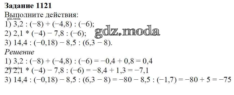 ОТВЕТ на задание № 1121 Учебник по Математике 6 класс Мерзляк Алгоритм успеха