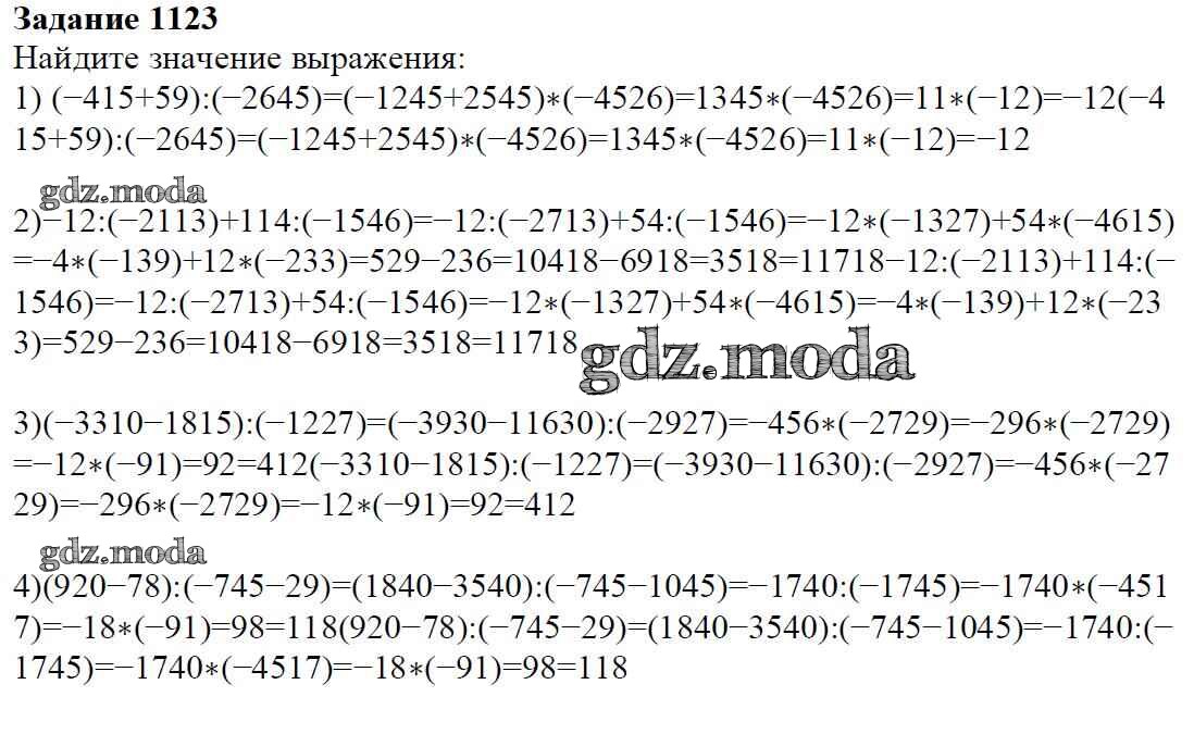 ОТВЕТ на задание № 1123 Учебник по Математике 6 класс Мерзляк Алгоритм успеха