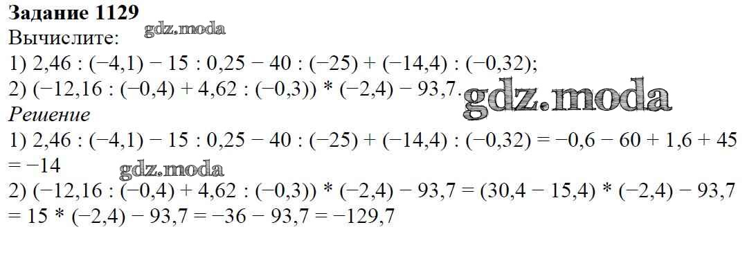 ОТВЕТ на задание № 1129 Учебник по Математике 6 класс Мерзляк Алгоритм успеха