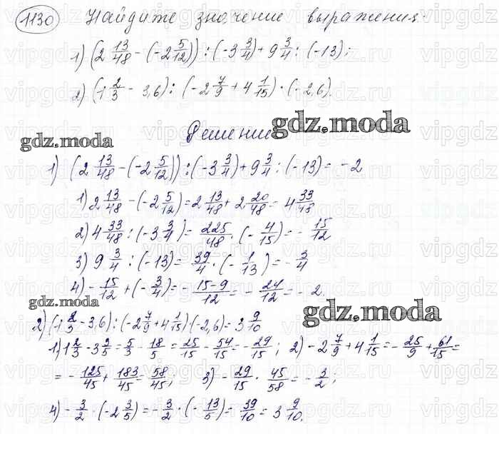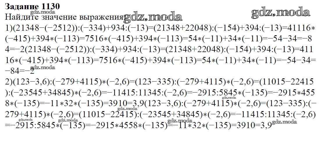 ОТВЕТ на задание № 1130 Учебник по Математике 6 класс Мерзляк Алгоритм успеха