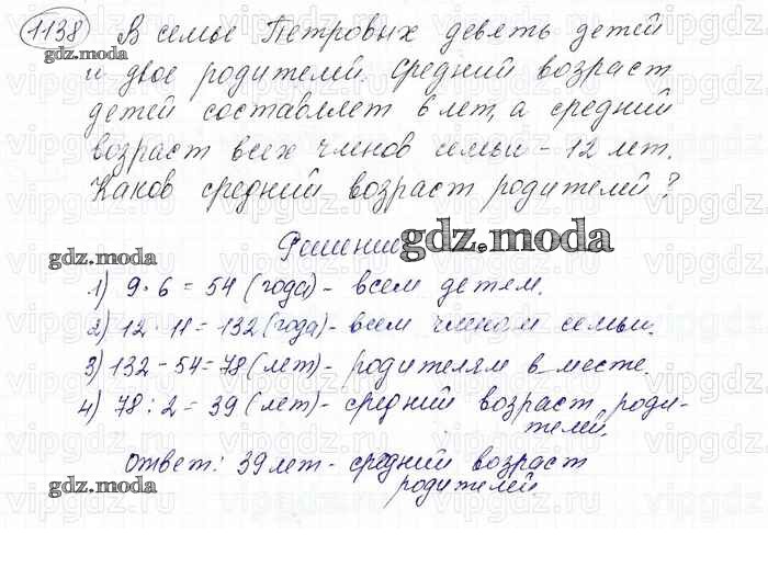 ОТВЕТ на задание № 1138 Учебник по Математике 6 класс Мерзляк Алгоритм успеха
