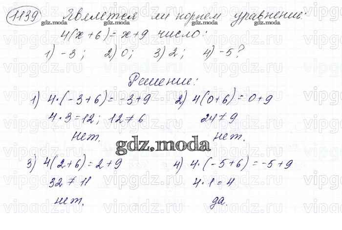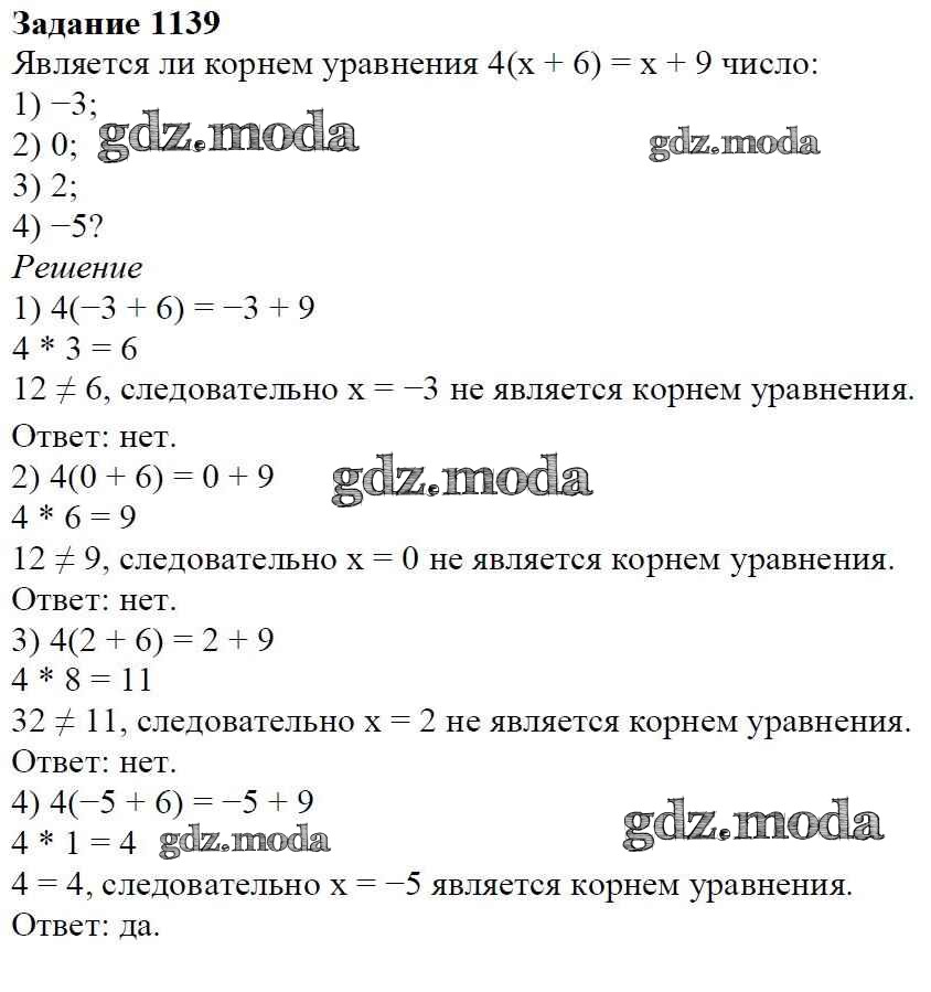 ОТВЕТ на задание № 1139 Учебник по Математике 6 класс Мерзляк Алгоритм успеха