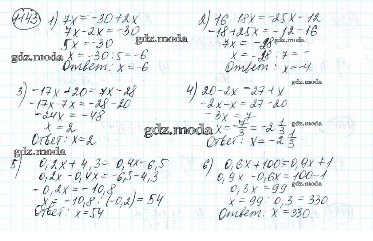 ОТВЕТ на задание № 1143 Учебник по Математике 6 класс Мерзляк Алгоритм успеха