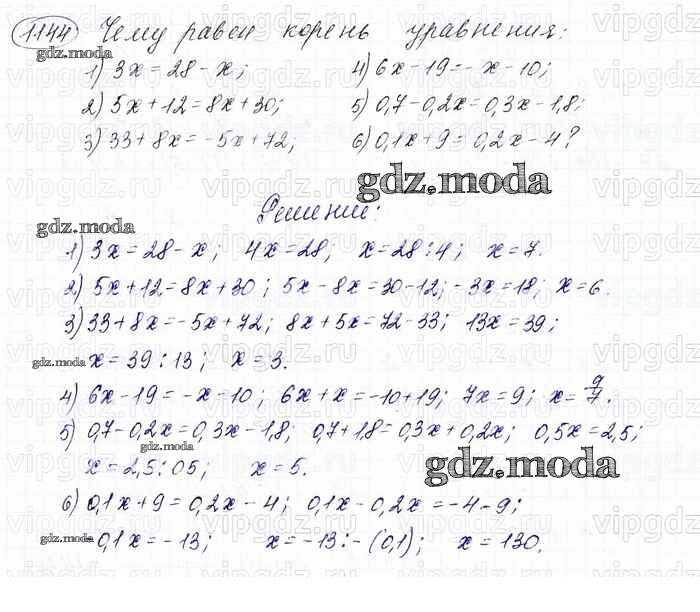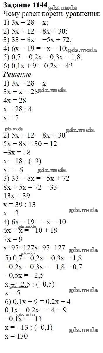ОТВЕТ на задание № 1144 Учебник по Математике 6 класс Мерзляк Алгоритм успеха