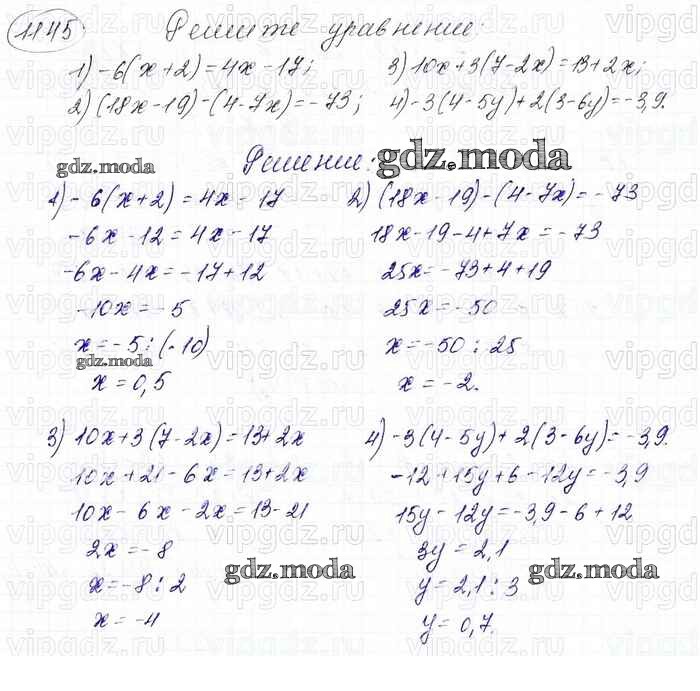 ОТВЕТ на задание № 1145 Учебник по Математике 6 класс Мерзляк Алгоритм успеха