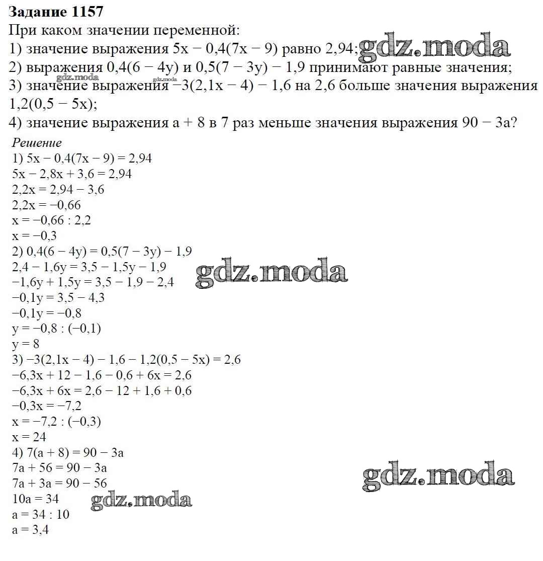 ОТВЕТ на задание № 1157 Учебник по Математике 6 класс Мерзляк Алгоритм успеха