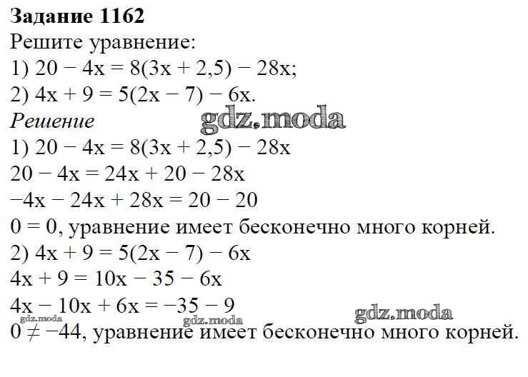 ОТВЕТ на задание № 1162 Учебник по Математике 6 класс Мерзляк Алгоритм успеха