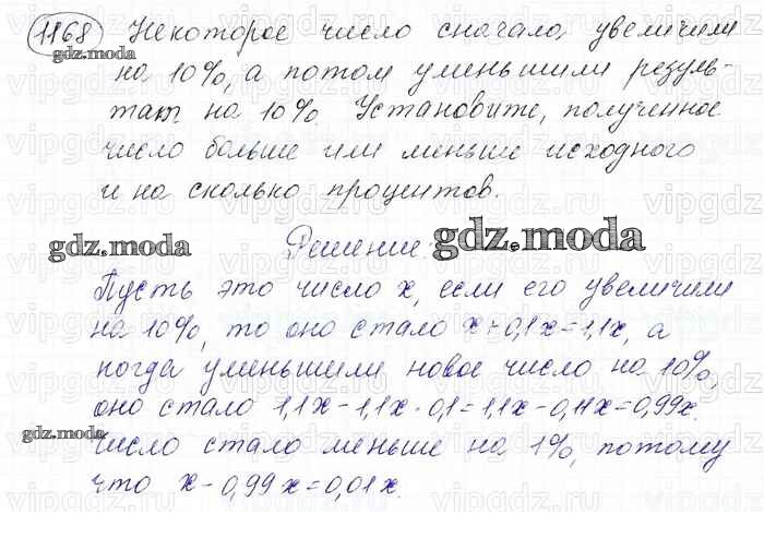 ОТВЕТ на задание № 1168 Учебник по Математике 6 класс Мерзляк Алгоритм успеха