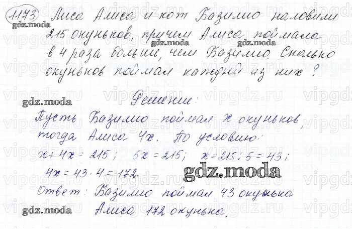 ОТВЕТ на задание № 1173 Учебник по Математике 6 класс Мерзляк Алгоритм успеха