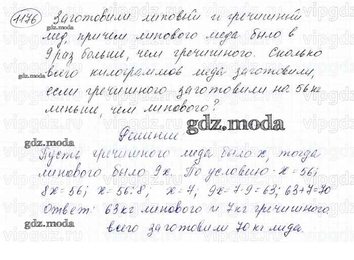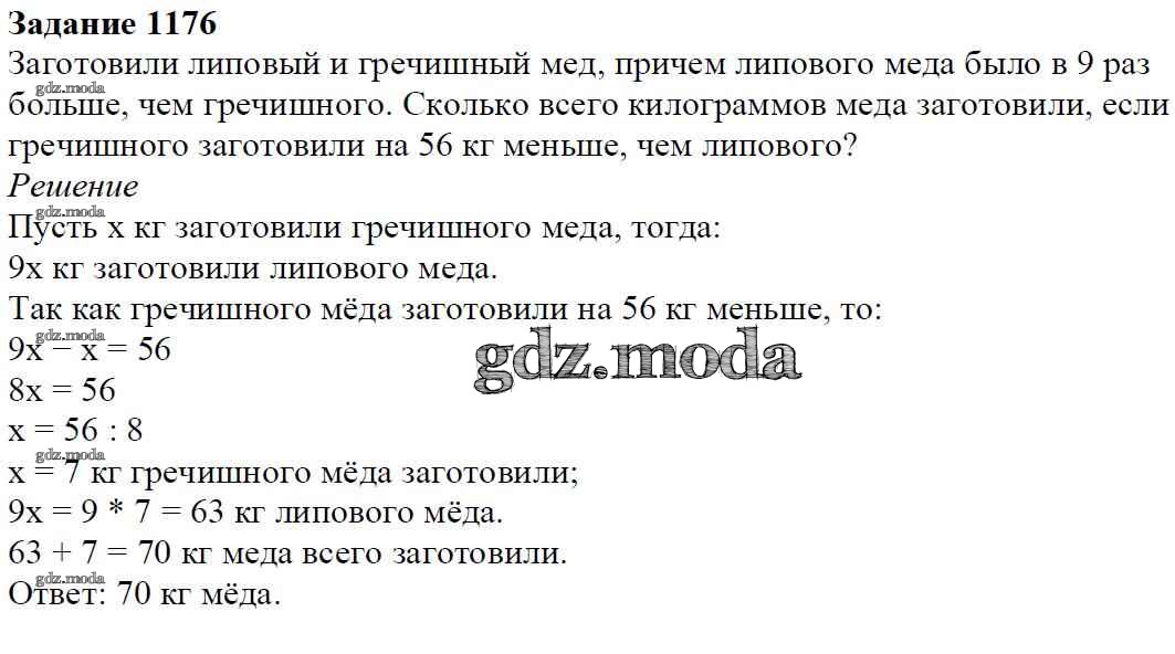 ОТВЕТ на задание № 1176 Учебник по Математике 6 класс Мерзляк Алгоритм успеха
