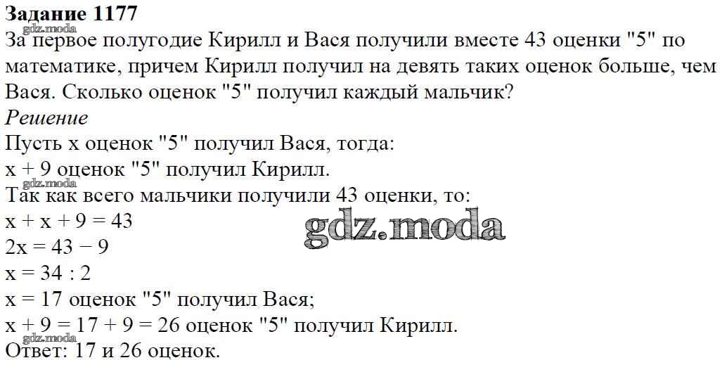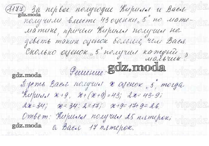 ОТВЕТ на задание № 1177 Учебник по Математике 6 класс Мерзляк Алгоритм успеха