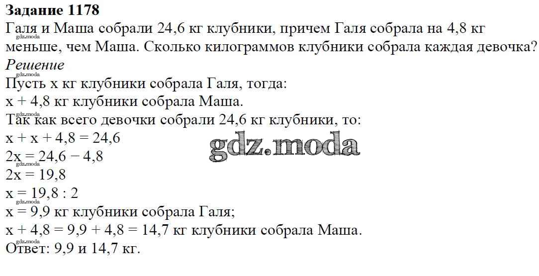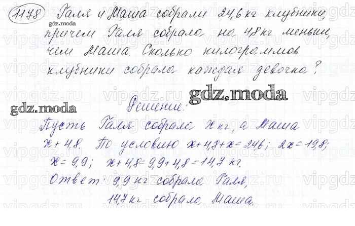 ОТВЕТ на задание № 1178 Учебник по Математике 6 класс Мерзляк Алгоритм успеха