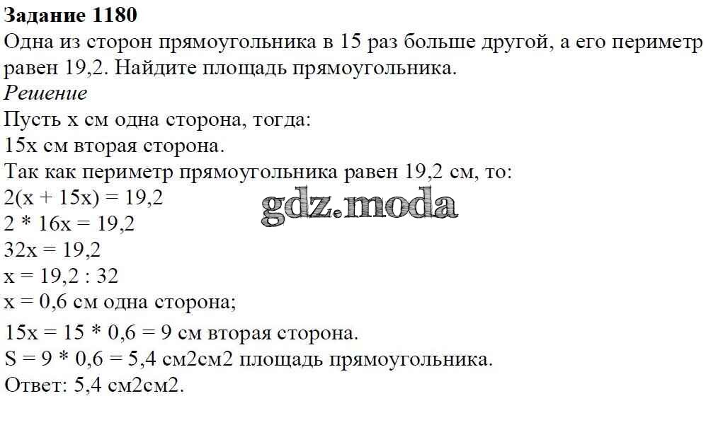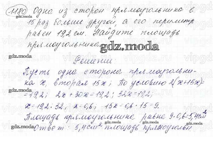 ОТВЕТ на задание № 1180 Учебник по Математике 6 класс Мерзляк Алгоритм успеха