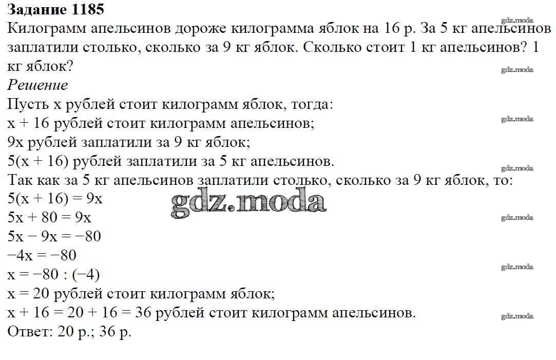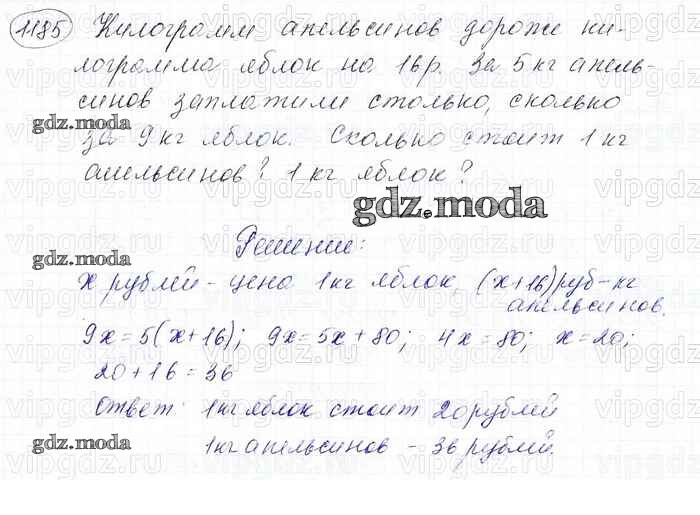 ОТВЕТ на задание № 1185 Учебник по Математике 6 класс Мерзляк Алгоритм успеха